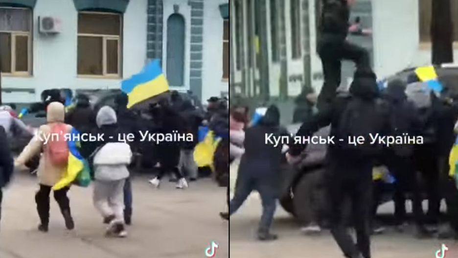 Po sieci krąży nagranie z Kupiańska, na którym widać, jak grupa miejscowych bez żadnej broni próbuje zaatakować i zatrzymać samochód z najeźdźcami, który wcześniej ukradli oni cywilom. Kamera uchwyciła, jak ludzie wdzierają się na samochód będący w ruchu. Jeden z Ukraińców próbował zniszczyć szybę.