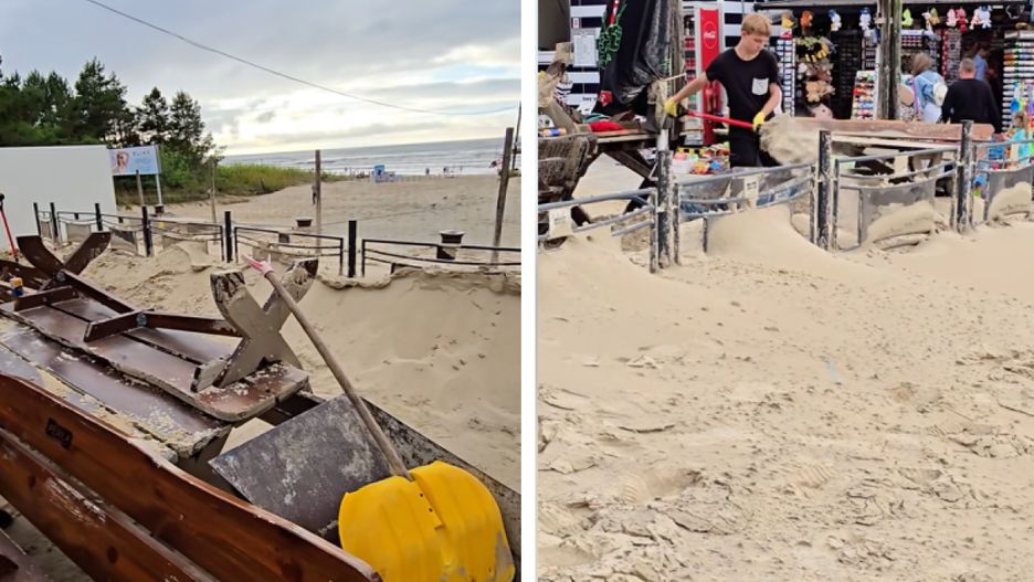 Na nagraniu opublikowanym na profilu Na Mierzeję, widzimy pracowników baru, którzy próbują pozbyć się ogromnych piaskowych zasp, korzystając z łopat i taczek. Do tej pory o "łopatowaniu" głośno było głównie zimą. Tym razem - pora na letnie, nadmorskie "łopatowanie".