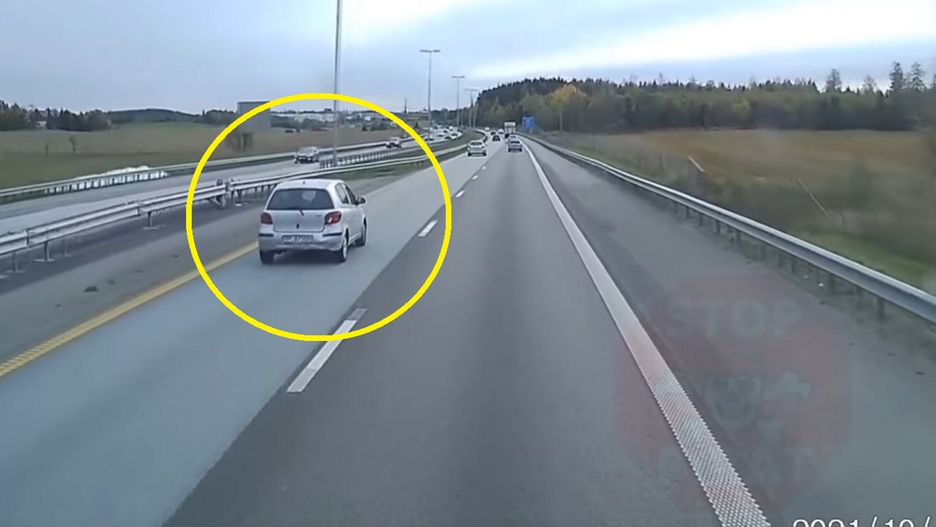 Do niebezpiecznego incydentu doszło 13 października o godzinie 14:44. Na początku nagrania wideo nic nie zapowiadało, że na prostej drodze dojdzie zaraz do wypadku. Jadąca lewym pasem toyota yaris niemalże uderzyła w barierki. Aby uniknąć zderzenia, kierowca gwałtownie odbił kierownicą w drugą stronę i z impetem wjechał w osłony po drugiej stronie. Na szczęście jadący ciężarówką autor nagrania zdążył wyhamować i nie zmiótł nią rozwalonego auta z prawego pasa.