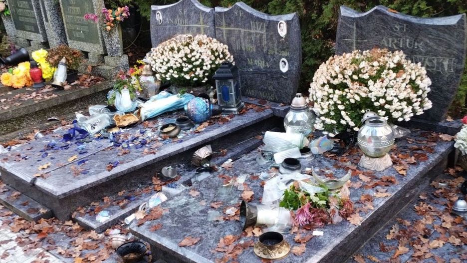 Tłukli znicze i nie tylko. Wstrząsające sceny na cmentarzu