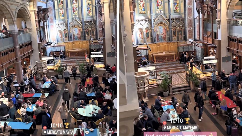 "Mercato Mayfair mieści się w zabytkowym kościele św. Marka. Kościół spędził 30 lat w rejestrze Zagrożonego Dziedzictwa Historycznej Anglii, zarezerwowanym dla budynków o znaczeniu kulturowym, które stoją w obliczu zagrożenia dla swojej przyszłości" - relacjonuje Magdalena Kosicka na Instagramie.