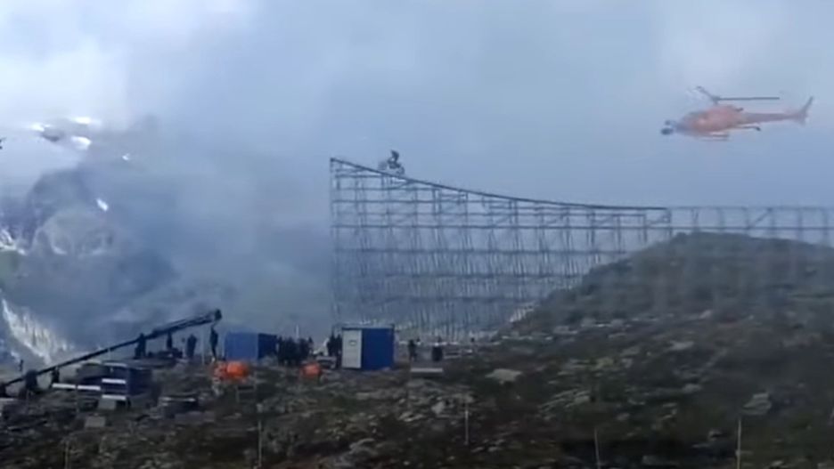 Budowa rampy w nietypowej scenerii była wielkim wyzwaniem dla filmowców. Oprócz tego musieli oni odczekać kilka dni na idealną pogodę, która pozwoliła na zrealizowanie sceny. Cruise rozpędził się na motorze i wyskoczył w przepaść, otwierając spadochron i lądując na ziemi. Całość nagrali norwescy dziennikarze. Reżyser filmu zapowiedział, że jest to jedna z trzech zapierających dech w piersiach scen, które pojawią się w filmie.