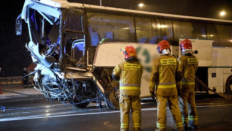 Do koszmarnej kolizji doszło w niedzielę po godz. 23:00 na podkarpackim odcinku A4 w pobliżu Miejsca Obsługi Podróżnych Kaszyce. Wstępne ustalenia służb wskazują na to, że autobus uderzył w bariery na końcu pasa zjazdowego, a następnie przewrócił się do rowu.