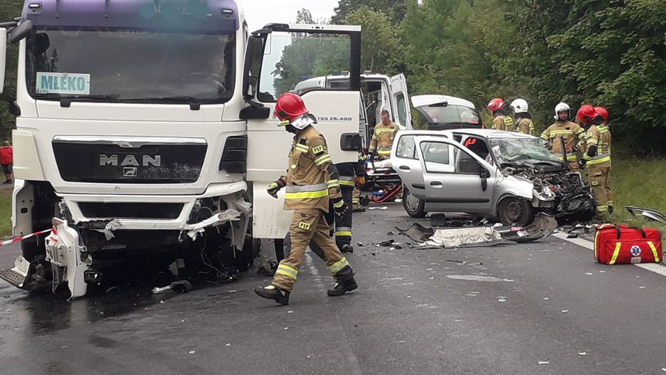 Jak widać na zdjęciach opublikowanych przez straż pożarną, przednia część renault jest całkowicie zniszczona, znacznie ucierpiał też samochód ciężarowy. Wszystko wskazuje na to, że uderzenie musiało być wyjątkowo silne.
