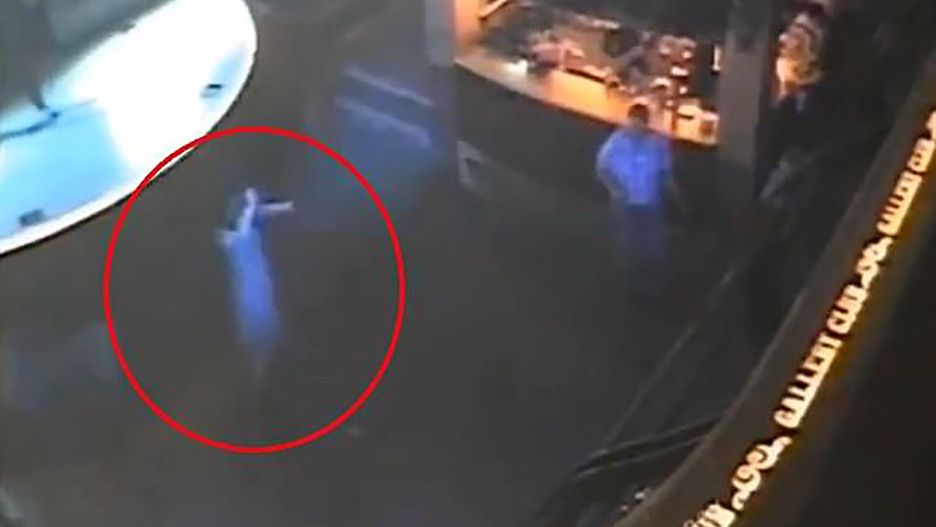 W mediach społecznościowych pojawiło się nagranie ze zdarzenia, zarejestrowane przez kamerę przemysłową. Widać na nim jak kobieta bawi się na środku parkietu. Nagle spadają na nią ekrany do karaoke.