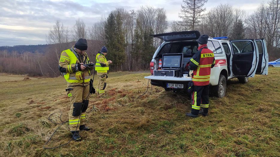 Zalesiony teren został sprawdzony kamerami termowizyjnymi, jednak strażacy i policjanci nie odnaleźli szukanego młodego mężczyzny. Przez fatalne warunki pogodowe w tym padający deszcz tropu nie podjął pies policyjny.