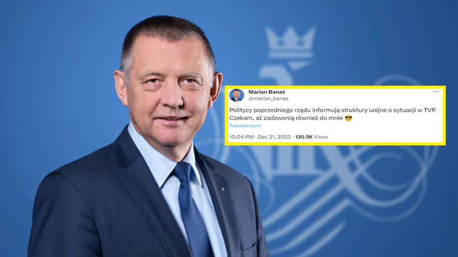 Politycy poprzedniego rządu informują struktury unijne o sytuacji w TVP. Czekam, aż zadzwonią również do mnie - napisał, nie bez złośliwości, Marian Banaś na portalu X.