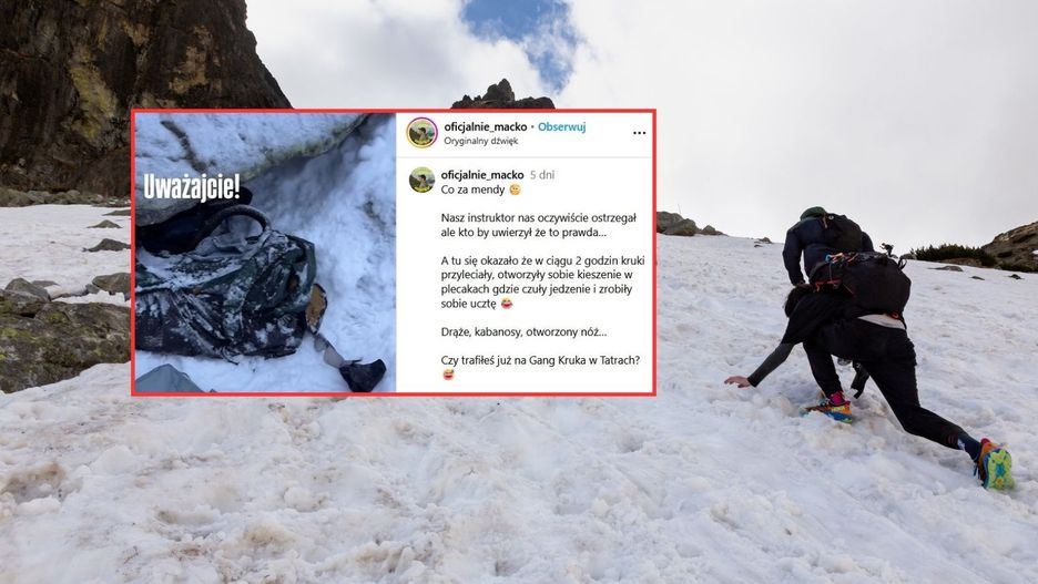 "Nasz instruktor nas oczywiście ostrzegał ale kto by uwierzył że to prawda. A tu się okazało że w ciągu 2 godzin kruki przyleciały, otworzyły sobie kieszenie w plecakach, gdzie czuły jedzenie i zrobiły sobie ucztę. Draże, kabanosy, otworzony nóż" - napisał turysta w opisie nagrania.