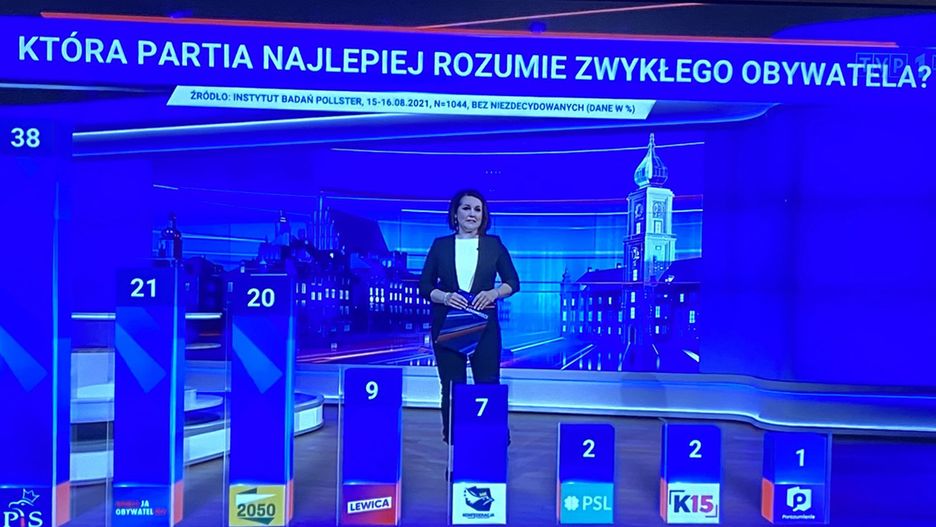 TVP od dawna oskarżane jest o jawne wspieranie partii rządzącej. Tym razem telewizja publiczna zaprezentowała wyniki ankiety przeprowadzonej przez Instytut Badań Pollster. Według nich, PiS z wynikiem 38 proc. głosów znajduje się na wyraźnym prowadzeniu przed innymi partiami.