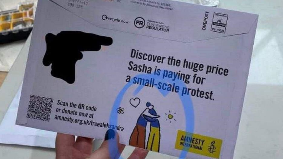 Koperty te, zostały rozesłane mieszkańcom Wielkiej Brytanii. Zawierają apel o przelewy na pomoc rosyjskim więźniom politycznym. Obrońcy praw człowieka proszą o przesłanie od 15 do 45 funtów na wsparcie petersburskiej artystki Saszy Skoczilenko.