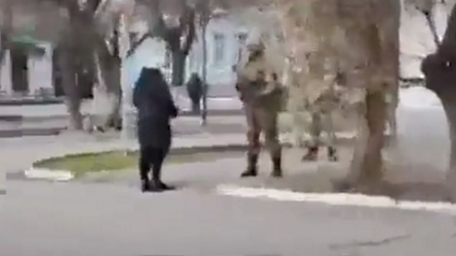 Obywatelka Ukrainy wykazała się niebywałą odwagą. Sfrustrowana mieszkanka Geniczeska podeszła do rosyjskiego żołnierza i zapytała go, po co przyjechał na Ukrainę. Na szczęście ten nie zaatakował jej, a odpowiedział, że nie jest to od niego zależne. Po chwili poprosił kobietę o powrót do domu. Konfrontacja została przez nią nagrana kamerą telefonu.