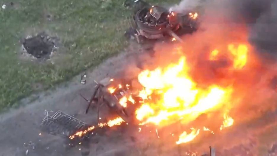 Wieżyczka czołgu wyleciała kilka metrów w powietrze, lądując kilka metrów dalej, a zdemolowane fragmenty czołgu płonęły jeszcze długo po uderzeniu.