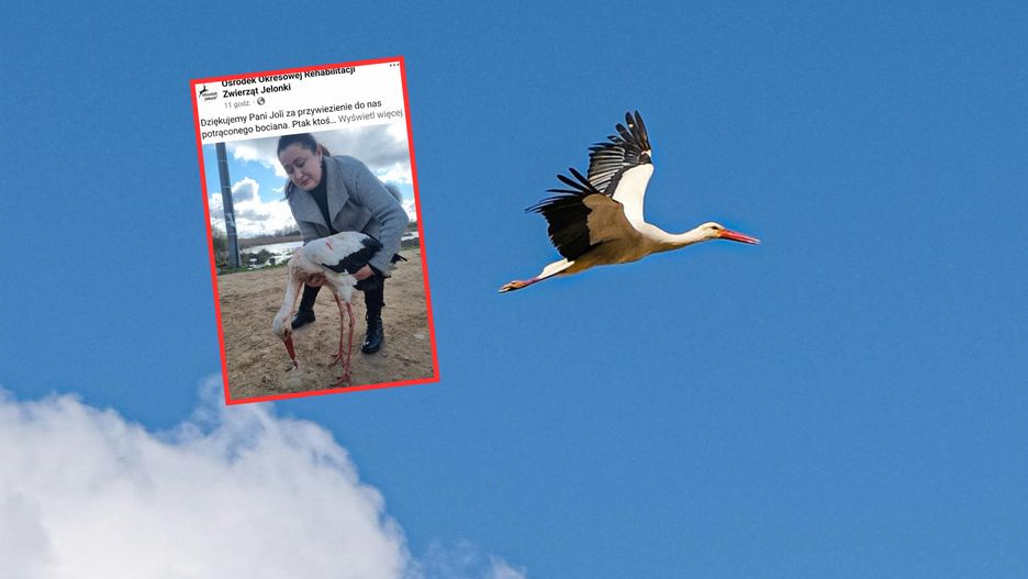 Dziękujemy Pani Joli za przywiezienie do nas potrąconego bociana. [...] Ptak na szczęście jest cały, nie połamany, krew leci mu z dzioba i ma obrzęk oka. Bocian miał dużo szczęścia, że spotkał na swojej drodze Panią Jolę, która bez wahania zatrzymała samochód, owinęła zakrwawionego ptaka w koc i przywiozła do nas – napisał Ośrodek Okresowej Rehabilitacji Zwierząt Jelonki w poście na Facebooku.