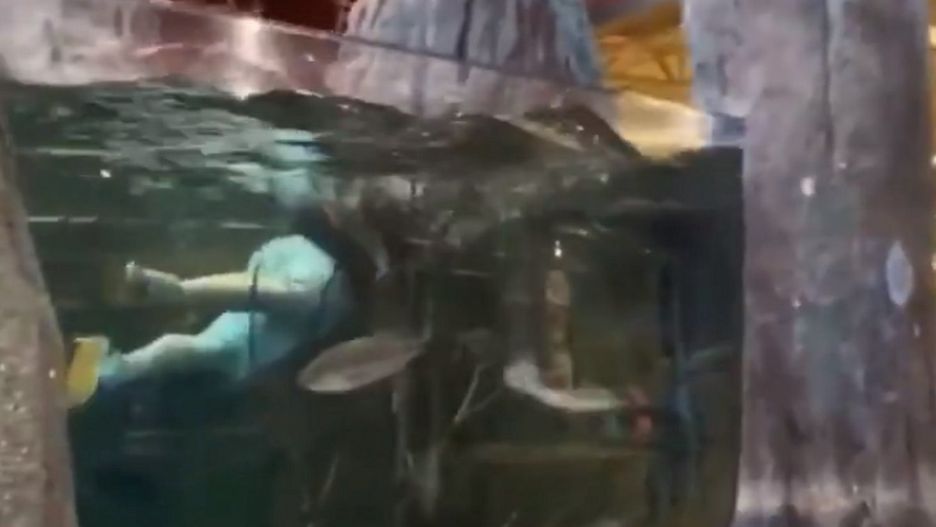 USA. Klient wskoczył do akwarium w sklepie wędkarskim [WIDEO]