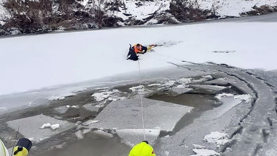 Na szczęście policjanci znaleźli rozwiązanie. Policjant Sebastian Michalski, narażając własne życie, wszedł do wody zabezpieczony w kamizelkę ratunkową i linkę do holowania. Mundurowy miał także deskę ortopedyczną, która rozkładała jego ciężar na lodzie, zapobiegając jego załamaniu.