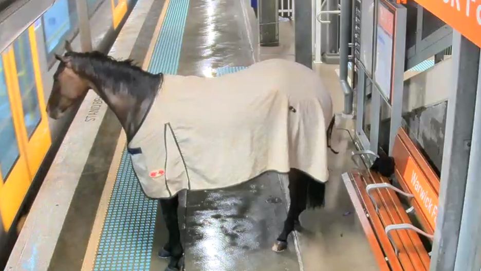 Na początku weekendu, koło północy czasu lokalnego, pasażerowie czekający na pociąg na stacji kolejowej Warwick Farm, zobaczyli coś niezwykłego. Na nagraniu z kamer monitoringu uchwycono moment, gdy koń wyścigowy wbiegł luzem na peron stacji.