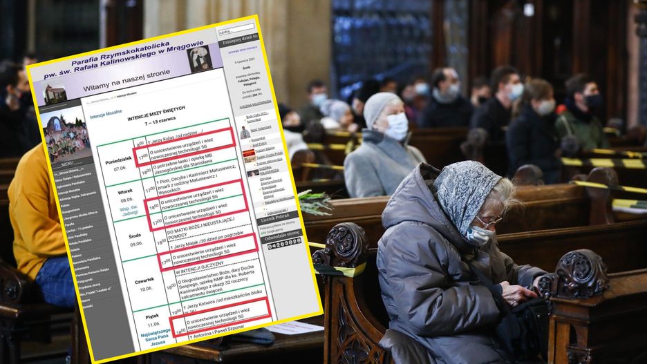 "O unicestwienie urządzeń i wież nowoczesnej technologii 5G" – to intencja, w jakiej odprawiane były codzienne msze w jednym z kościołów w Mrągowie. Harmonogram nabożeństw w Parafii Rzymskokatolickiej pw. św. Rafała Kalinowskiego wywołał burzę w sieci. "Proszę dać znać, czy się udało unicestwić" – piszą żartobliwie internauci. Proboszcz parafii w rozmowie z o2 przyznaje, że miał opory przed dopuszczeniem takiej intencji.