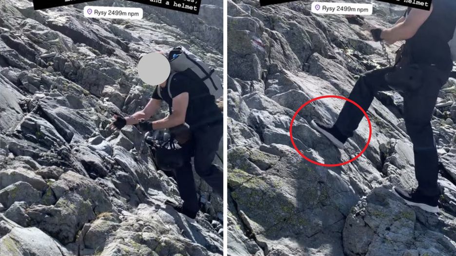 Jeden z użytkowników Instagrama w ostatnich dniach opublikował nagranie ze szlaku na Rysy. Na filmiku widzimy, jak młody mężczyzna pokonuje odcinki z łańcuchami po stromych skałach w lekkich butach (z siatki) ze śliską podeszwą.