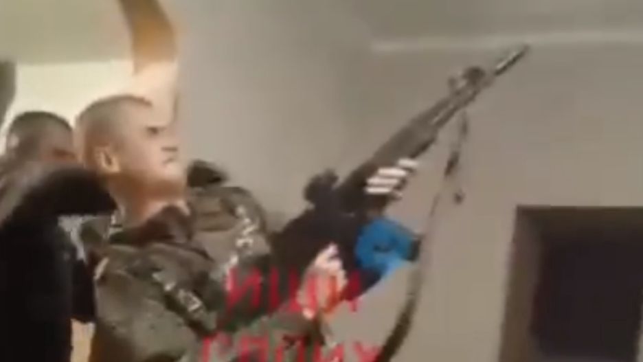 Na nagraniu zarejestrowano dwóch rosyjskich żołnierzy, z których jeden miał przy sobie karabin. Był wyraźnie zadowolony, wręcz zrelaksowany. Po chwili do środka wkroczył kolega z armii. Zdołał uprosić właściciela broni, aby mu ją udostępnił.