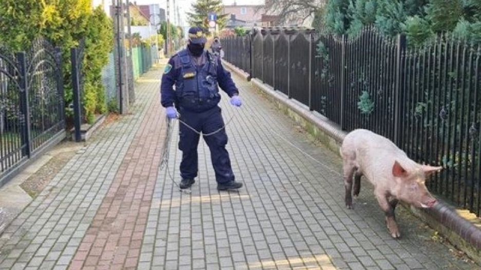 Ciekawska świnia chodziła sobie po ulicach: Mestwina i Pokoju, podaje Twoja Telewizja Morska. Straż miejska podjęła się interwencji i w końcu złapała świnię.