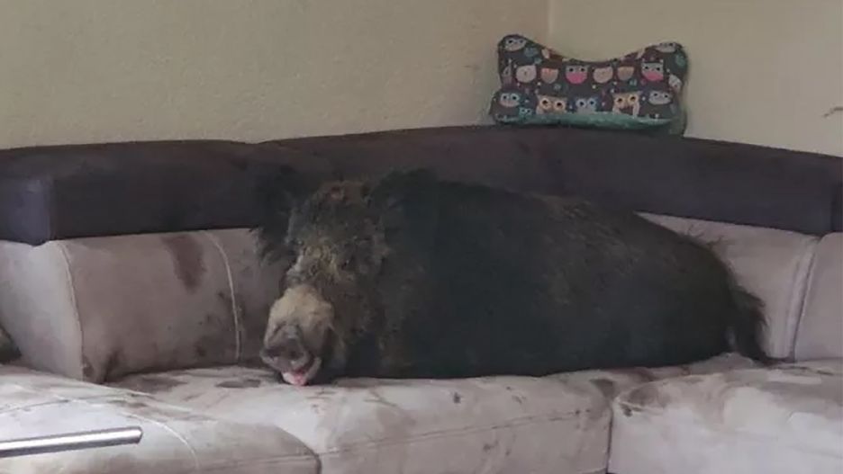 Zadowolony dzik wylegiwał się na kanapie. Nieproszonym gościem zajęli się policjanci