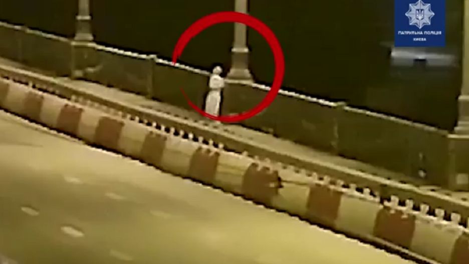 Kijowscy policjanci uratowali kobietę, która stała na gzymsie mostu nad rzeką Dniepr, chcąc popełnić samobójstwo. Później wyznała, że nie chce żyć przez liczne problemy rodzinne i zawodowe. Z nagrania widać, że radiowóz policji zdążył przyjechać dosłownie w ostatnich chwilach.