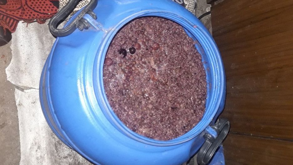 Podczas przeszukania policjanci ujawnili i zabezpieczyli niemal 100 litrów "zacieru" znajdującego się w plastikowych beczkach oraz gotowy już produkt.