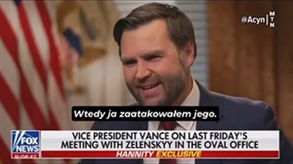 Wiceprezydent J.D. Vance w telewizji Fox News przekonywał, że to Zełenski, jako pierwszy go zaatakował.
