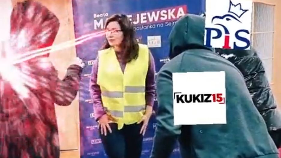 Posłanka Lewicy wszystkich "niszczy" laserami, które wydobywają się z jej oczu. Całość trwa zaledwie osiem sekund.