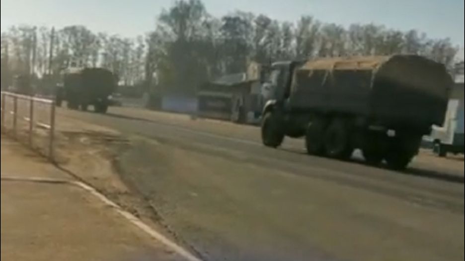 W pobliżu miasta Homel na Białorusi zauważono duży konwój sprzętu wojskowego. Zmierza w kierunku granicy z Rosją.