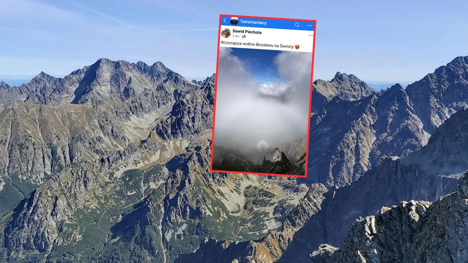 Na facebookowej grupie Tatromaniacy jeden z użytkowników podzielił się niezwykłym zdjęciem wykonanym ze szczytu Świnicy (2302 m n.p.m.). Uchwycił na nim rzadkie i budzące zachwyt widmo Brockenu. Fotografia błyskawicznie podbiła serca internautów, zdobywając niemal 7 tys. polubień i wiele komentarzy.