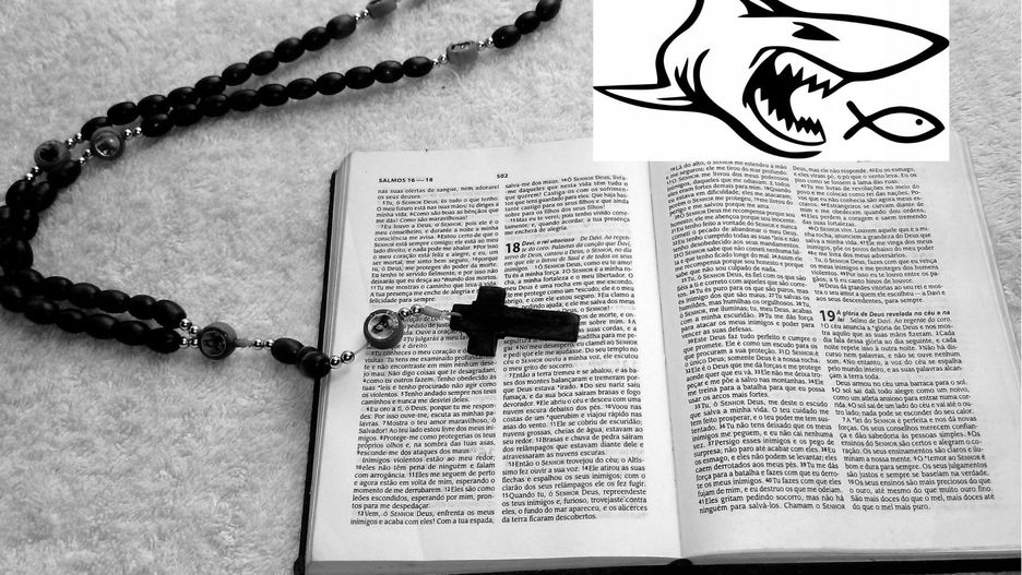 Odpowiedzią na takie działania okazują się naklejki z rekinem goniącym niewinną rybę. Graficznie prosty obrazek pokazuje w dosadny sposób jak właściciele auta z taką naklejką podchodzą do spraw religijnych. To odpowiedź ateistów, którzy nie godzą się na wszechobecność religii i kojarzących się z nią znaków.