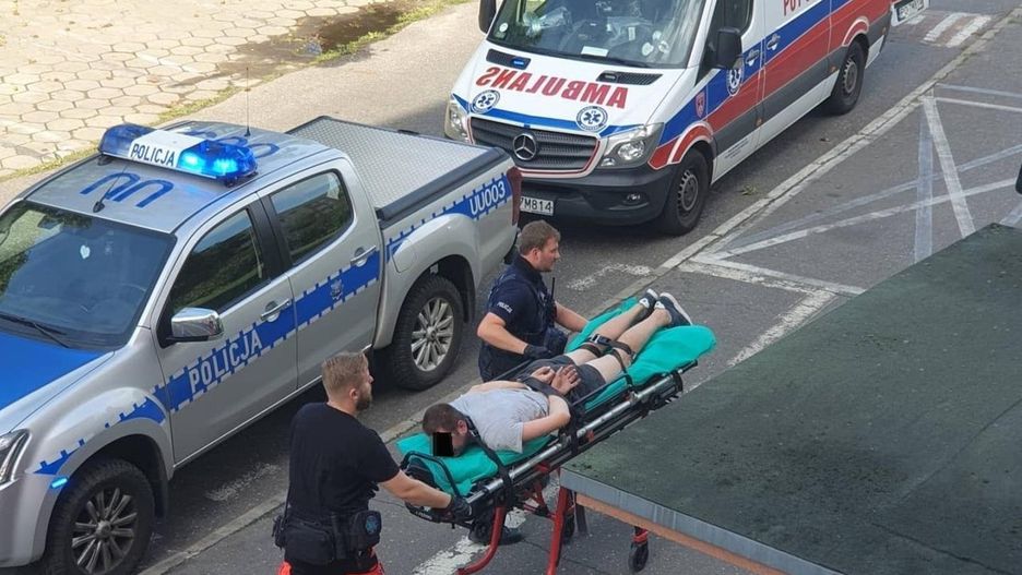 Policja zatrzymała agresywnego mężczyznę. Świadkowie myśleli, że agresor był pod wpływem środków odurzających. Wezwano karetkę pogotowia. Zatrzymany trafił do szpitala, gdzie pobrano mu krew do badań.