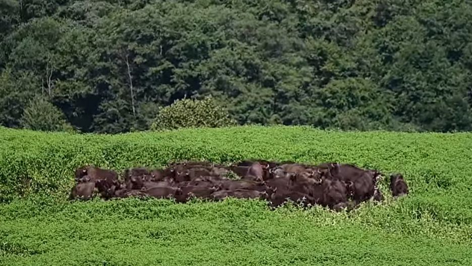 Na nagraniu widać stado żubrów, które wyczuły obecność wilków w okolicy. Zwierzęta były świadome zagrożenia ze strony drapieżników. Ewentualny atak mógł zakończyć się śmiercią np. jednego z cieląt. Pomimo znacznie mniejszych rozmiarów, szybkość i zwinność wilków bez problemu pozwoliłaby im na atak.