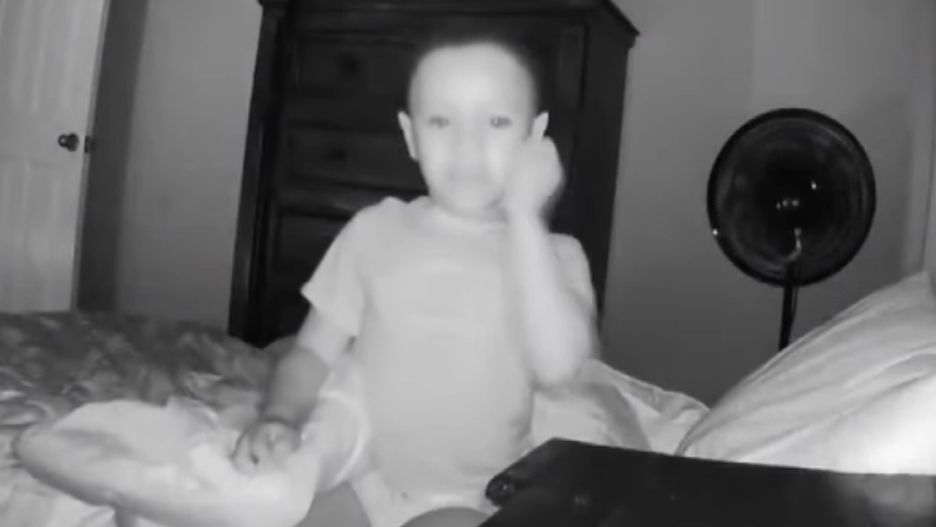Chłopiec zsuwa się z łóżka, patrząc szeroko otwartymi oczami w kierunku kamery, gdy nagle słyszy cichy szept: "hej". Początkowo podchodził do kamery ostrożnie, lecz szybko zaczął się cofać, aż w końcu wybuchł płaczem i krzykiem.
