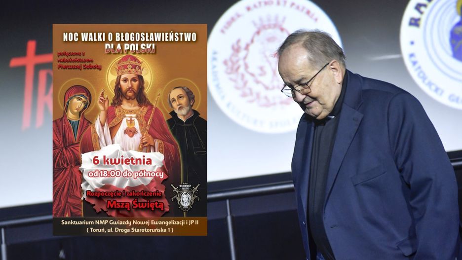 Noc walki o błogosławieństwo dla Polski odbędzie się 6 kwietnia w godzinach 18.00 - 00.00. Organizatorami wydarzenia jest m.in. męska formacja "Wojownicy Maryi". A gospodarzem instytucja, którą stworzył redemptorysta o. Tadeusz Rydzyk.