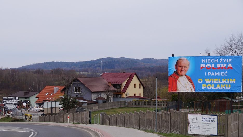"Niech żyje Polska i pamięć o wielkim Polaku" - brzmi hasło, które umieszczono na banerze w Izdebniku w powiecie wadowickim. Pokaźnych rozmiarów billboard z wizerunkiem Jana Pawła II stanął przy drodze krajowej nr 52 na trasie Wadowice - Kraków.