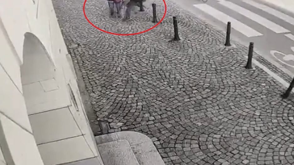 Kamery monitoringu uchwyciły moment, w którym mężczyzna podchodzi do idącej chodnikiem starszej kobiety i bez przyczyny kobie ją z całej siły, po czym odchodzi jak gdyby nic się nie stało. Leżącej na ziemi ofierze agresora pomaga przypadkowy przechodzień.