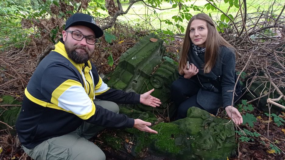 Pani archeolog, Joanna Biniek, wraz z panem Tomaszem, udali się na miejsce, aby sprawdzić, czy rzeczywiście jest jakiś ślad po rzeźbie.