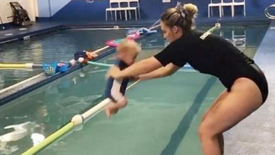 Akcja rozgrywa się na basenie. Nagranie zamieszone w sieci pokazuje instruktorkę pływania, która wrzuca niemowlę do wody. Dziecko znika na chwilę pod powierzchnią, po czym samodzielnie się wynurza. Tam czeka na nie instruktorka.