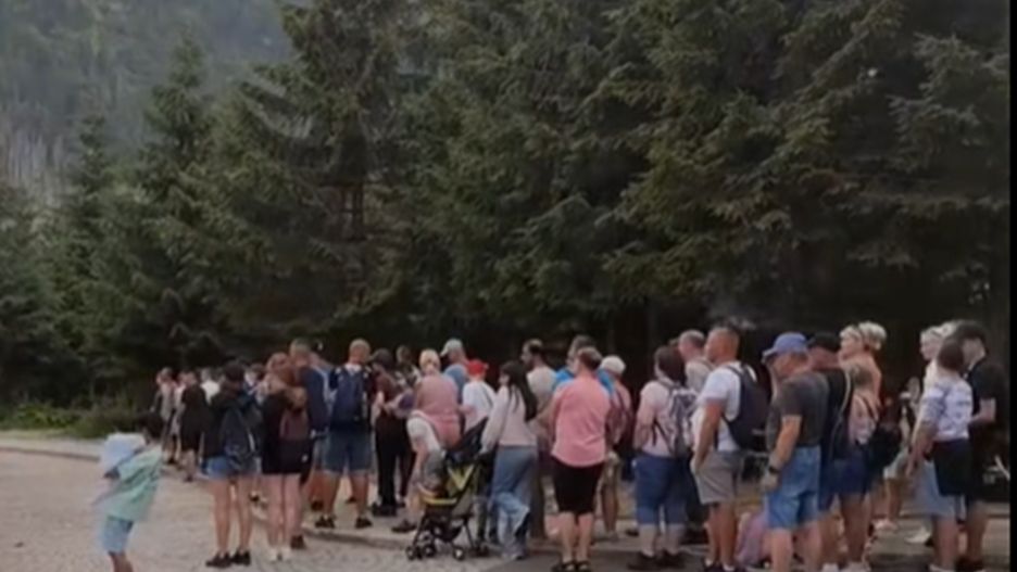 Do sieci trafiła nagranie z Morskiego Oka. Widać na nim tłum czekający na wozy konne. Turyści prawdopodobnie chcieli zjechać z Morskiego Oka. Tymczasem kursują już elektryczne busy.