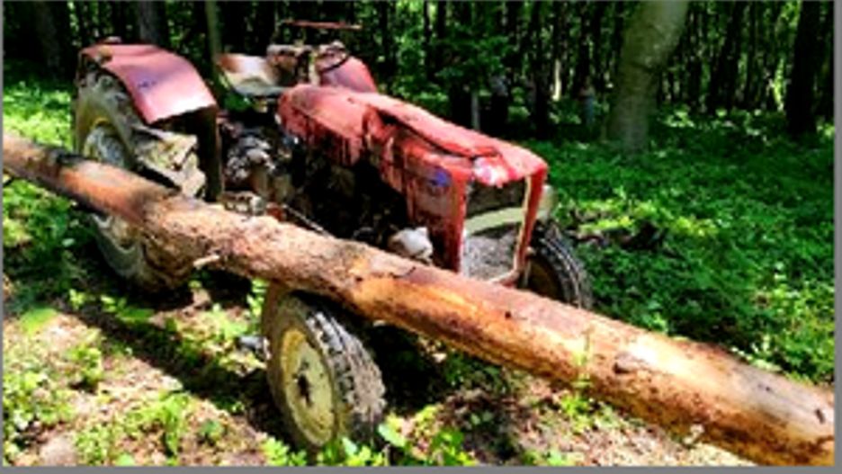 68-latek, który wykonywał w lesie prace związane z wycinką drzew został przygnieciony przez ciągnik rolniczy. (© Policja)