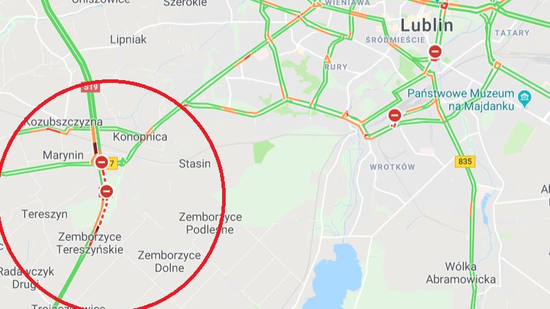 Do wypadku około godziny 18 w Zemborzycach Tereszyńskich na drodze krajowej nr 19, na wjeździe na obwodnicę Lublina. Jak podaje lublin112.pl, przewrócił się samochód ciężarowy z naczepą. Według portalu, pojazd stanął w płomieniach.
