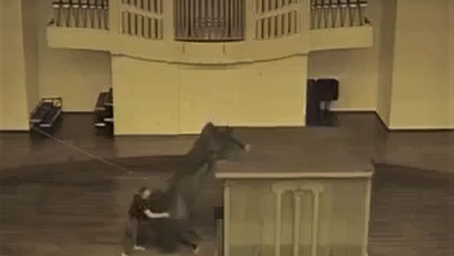 Instrument zaczął stopniowo zsuwać się z windy. Katastrofie desperacko próbował zapobiec obecny na sali mężczyzna, niestety bezskutecznie. Kiedy platforma podniosła się do końca, fortepian runął na ziemię w pozycji pionowej, klawiaturą w dół.