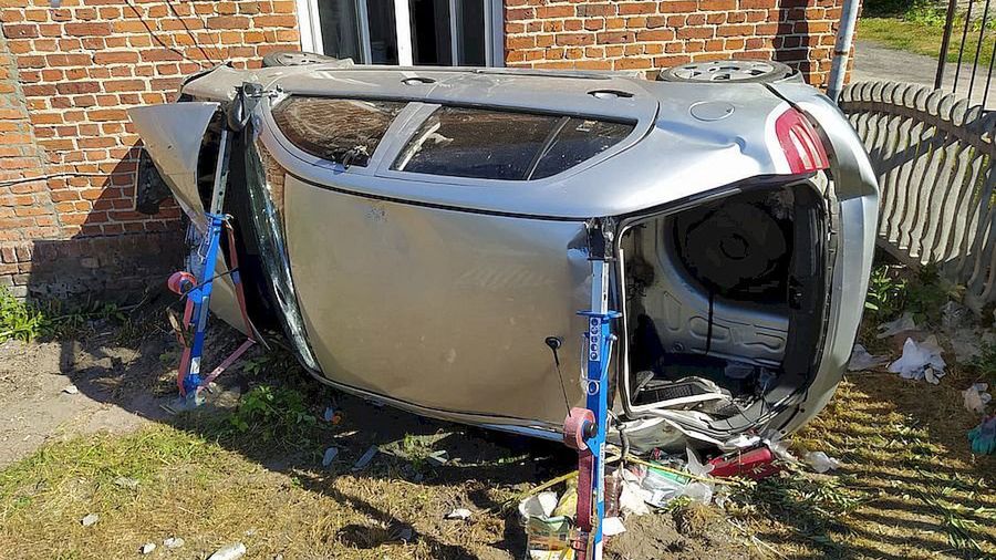 Pojazd przebił betonowe ogrodzenie i zatrzymał się na ścianie budynku mieszkalnego. 68-latek został uwięziony w rozbitym samochodzie. Po przybyciu służb okazało się, że prowadził on pojazd w stanie nietrzeźwości. Badanie alkomatem wykazało u niego ponad 2 promile alkoholu w organizmie. Poszkodowany trafił z obrażeniami ciała do szpitala.