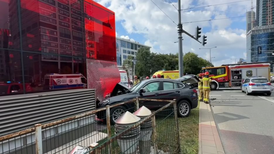 Do wypadku doszło na Rondzie Daszyńskiego na warszawskiej Woli. Jak relacjonuje na Facebooku "Miejski Reporter", oznakowany radiowóz marki kia zderzył się z samochodem osobowym, a w wyniku zderzenia BMW uderzyło w windę do metra.