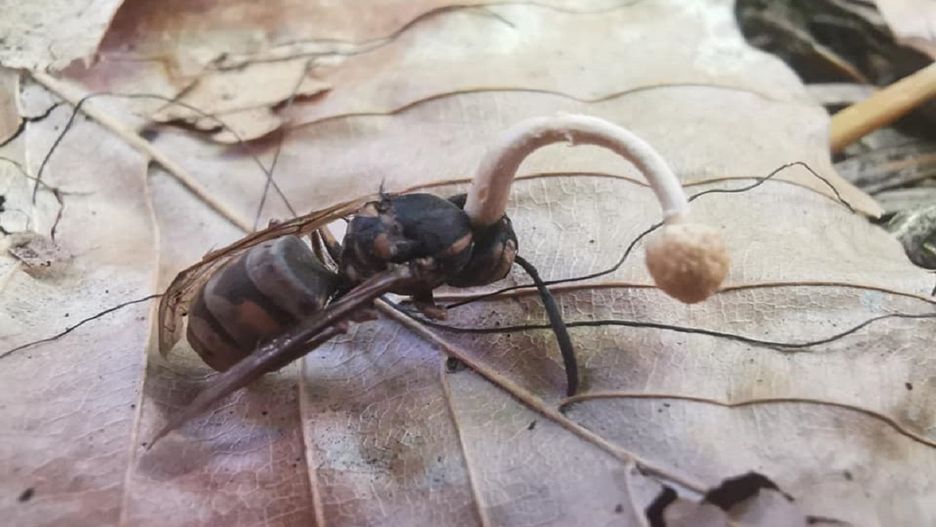 Pasożytniczy grzyb to kuzyn Ophiocordyceps unilateralis, który dopada mrówki i rozwija się w nich. Następnie przejmuje nad owadem kontrolę, zamieniając go w "zombie". Podobnie działa maczużnik, którego możemy znaleźć w Polsce.
