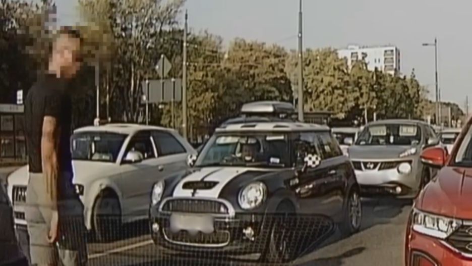 Do tego mrugał światłami i trąbił. W końcu kierowca zdecydował się opuścić swój pojazd na środku skrzyżowania i zapukać w szybę "swojego drogowego rywala".