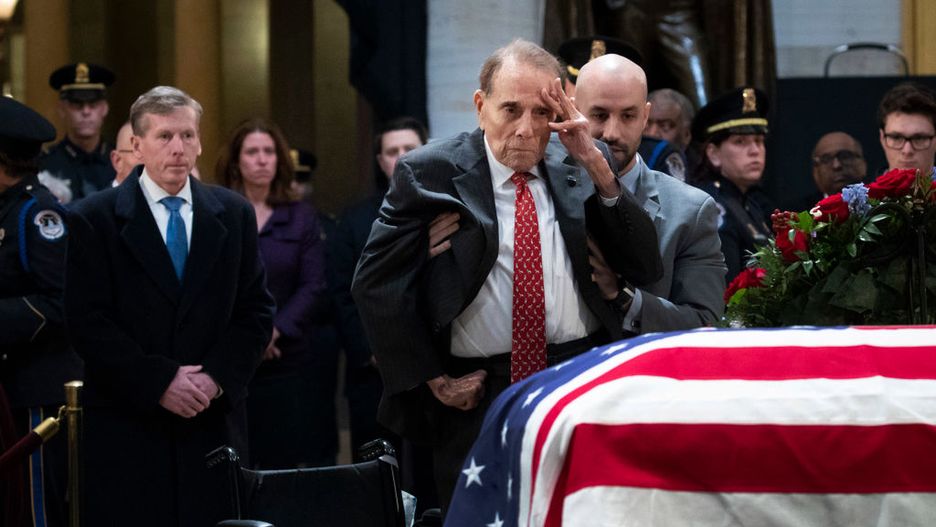 Wzruszający moment przed pogrzebem Busha. Bob Dole wstał z wózka i oddał mu hołd