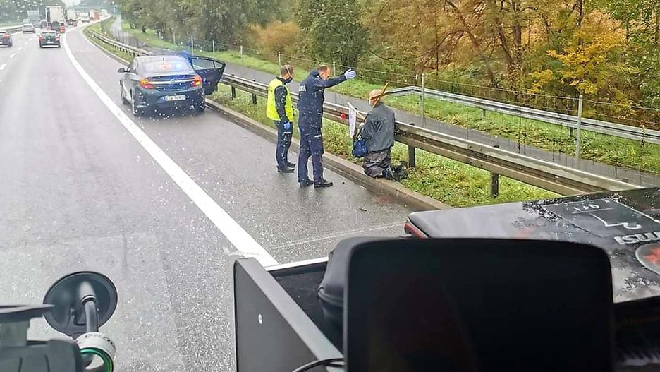 Kierowcy przejeżdżający autostradą A4 byli w szoku. W sobotę 17 października około 12:30 zobaczyli tam mężczyznę, który przemieszczał się poboczem na kolanach.